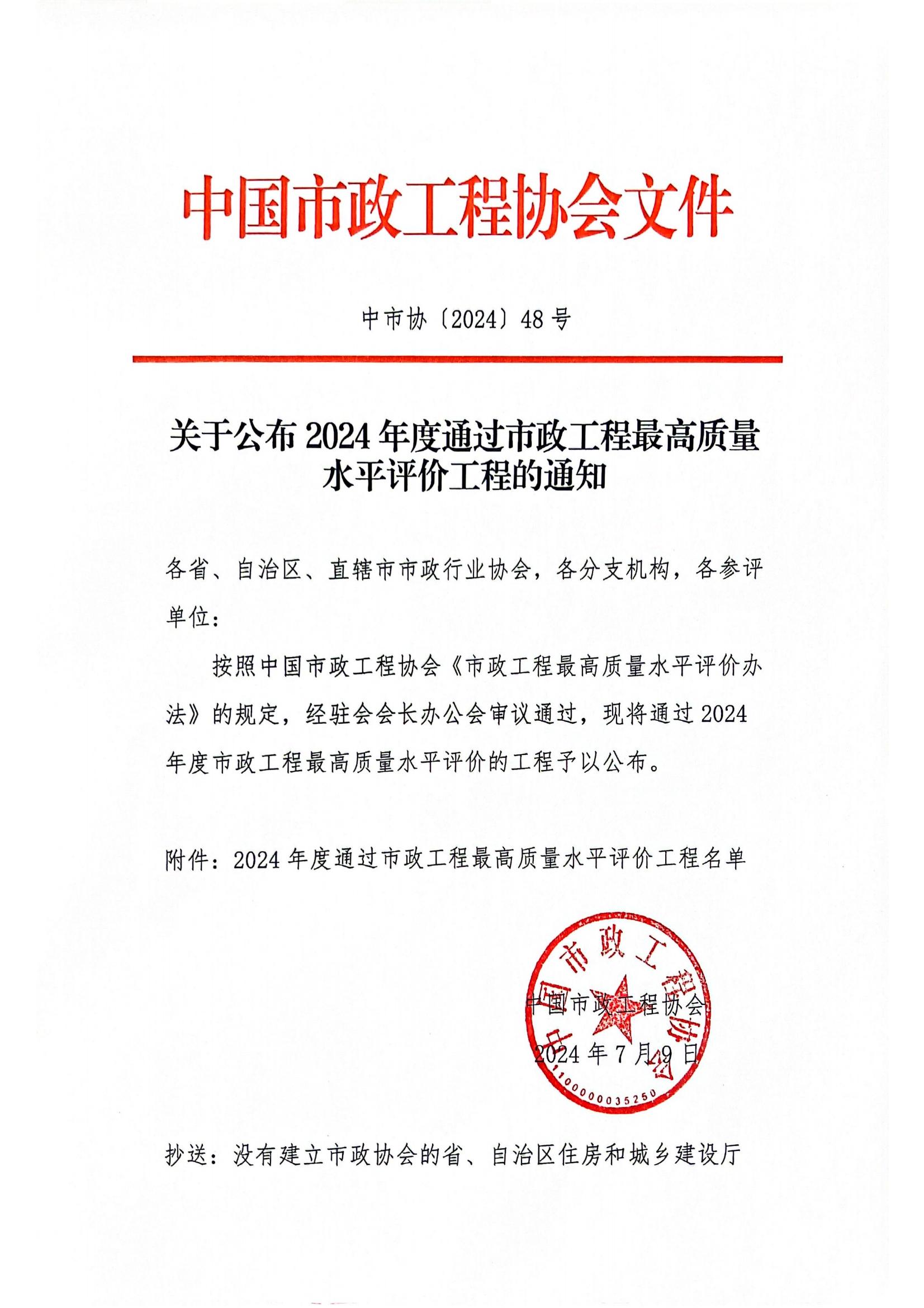 市政工程最高質量水平評價(原中國市政金杯示范工程)是我國市政行業在工程質量方面的最高榮譽,與國優獎、魯班獎、詹天佑獎同為中國建筑質量最高獎,代表市政工程行業同時期國內先進水平,由中國市政工程協會組織實施,評選要求高、評選程序嚴,旨在推進市政行業高質量發展,促進工程質量和技術創新。